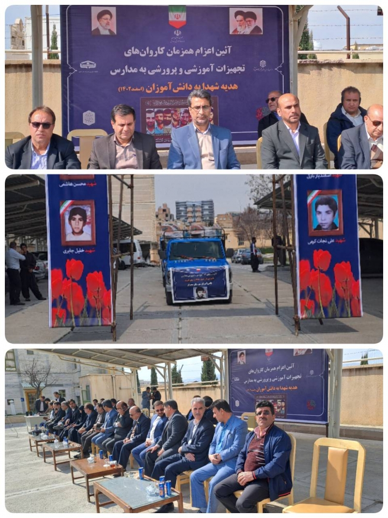 آیین بدرقه کاروان تجهیزات آموزشی به چهارده شهرستان و منطقه آموزشی استان ایلام